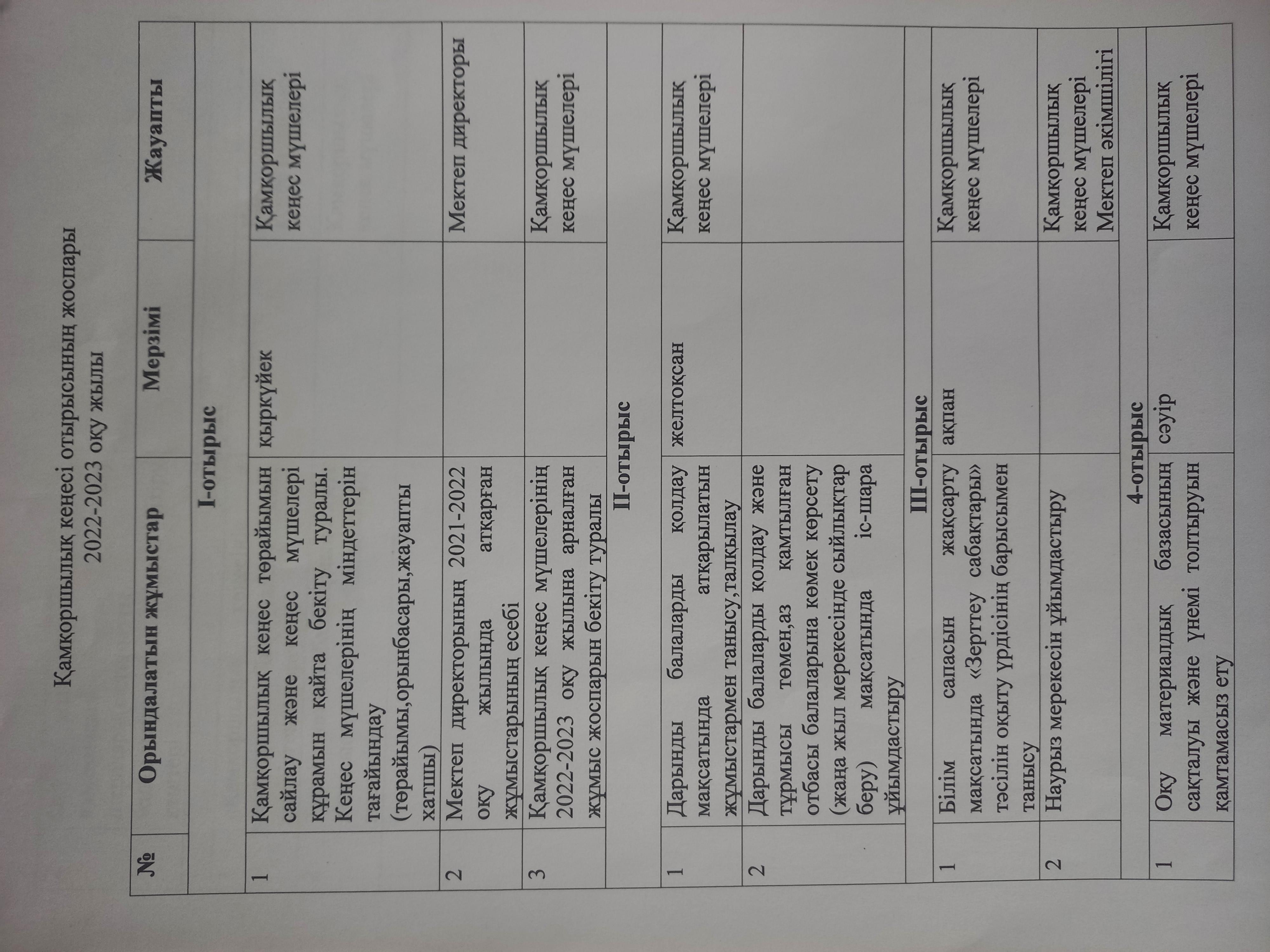 Қамқоршылық кеңесі отырысының жоспары 2022-2023 оқу жылы