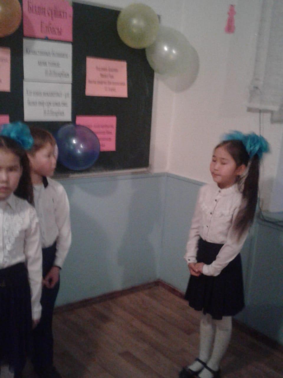 27 қараша мен 30 қараша күндері аралығында сынып жетекшілері өз сыныптарында ашық тәрбие сағаттарын өткізді. 4 сынып жетекшісі Г. Жанбосынованың сынып сағаты айтарлықтай тартымды өткізіліп, оқушылар Елбасымыз туралы өлең жолдарын айтып, патриоттық сезімдерін толық жеткізе білді.