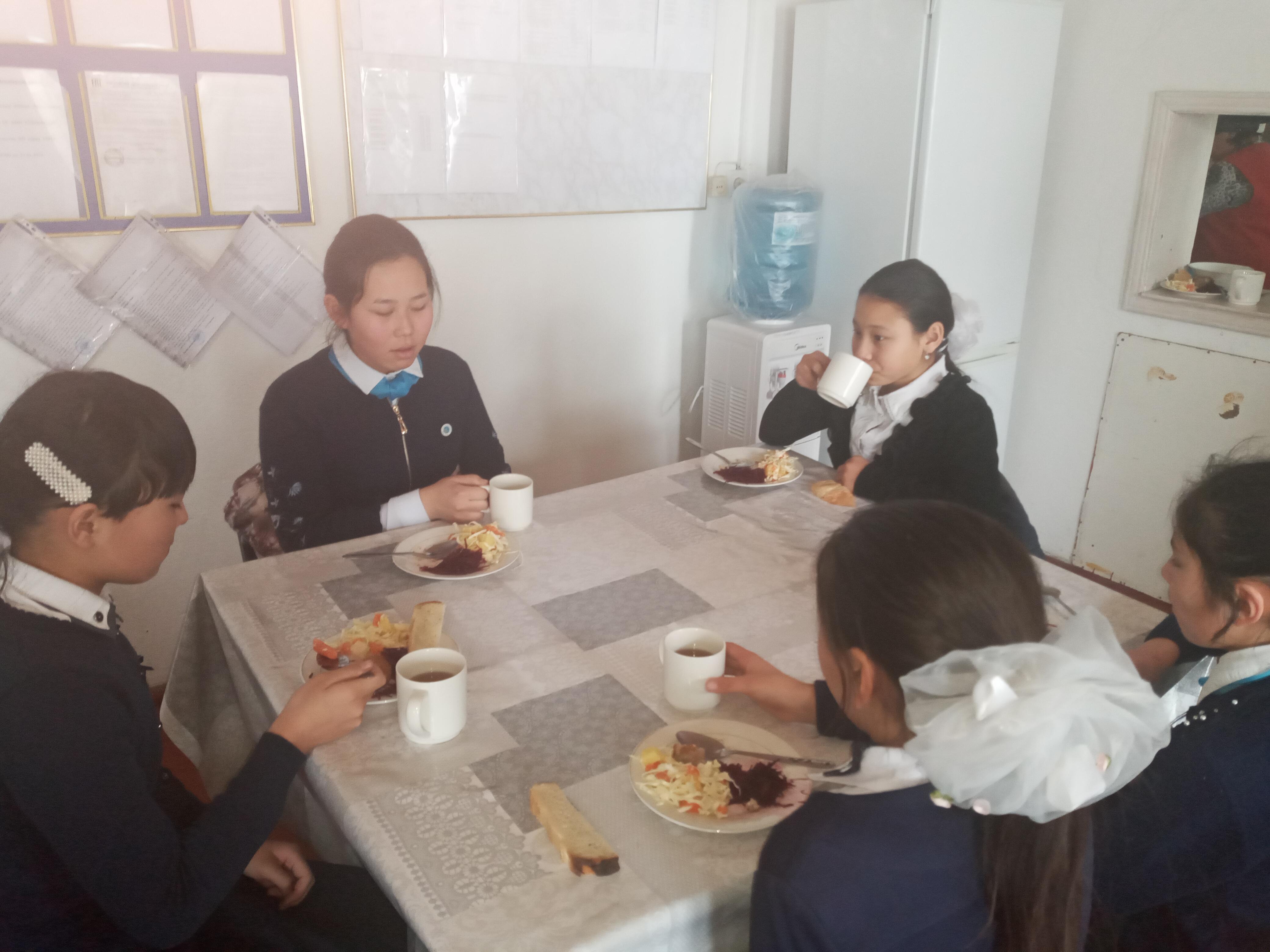 Жиенбет негізгі мектебі бойынша бір мезгіл тегін ыстық тамақпен қамтылған оқушыларға тамақты дұрыс ұйымдастыру бойынша жүргізілген жұмыстар.