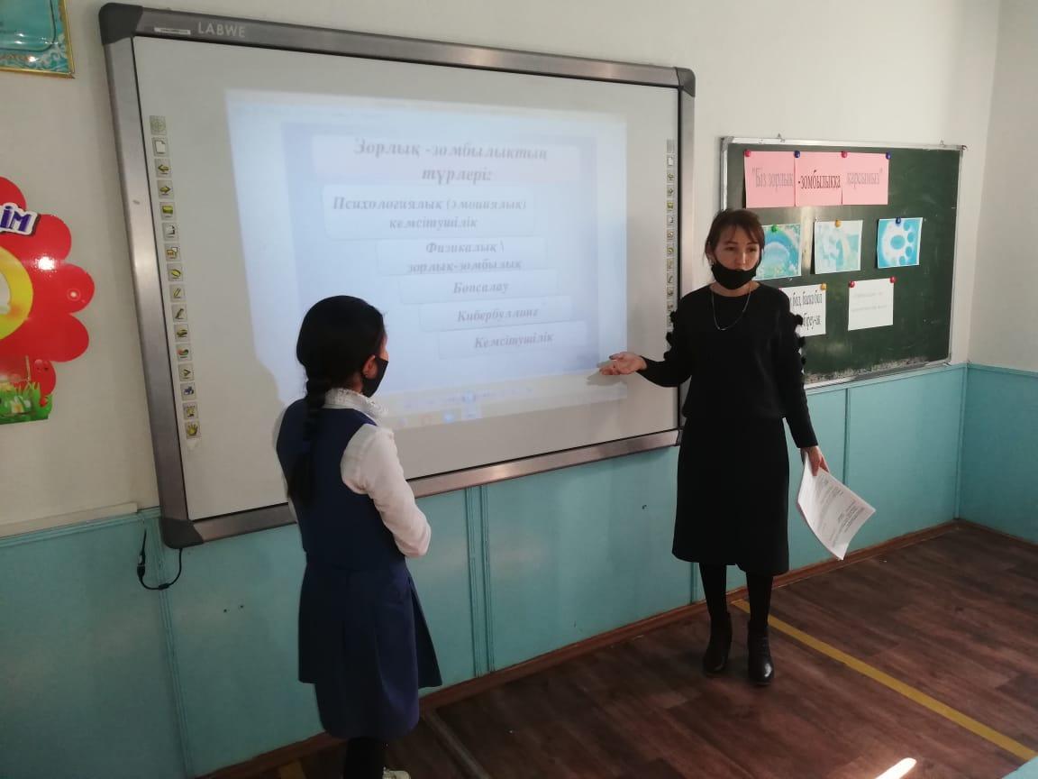 24 март 2021 0 1 2 3 4 5 Жиенбет негізгі мектебі Жиенбет негізгі мектебінде Дүниежүзілік балаларды қорғау күніне арналған "Бала құқығы-адам құқығы" жоспары аясында "Зорлық-зомбылыққа төтеп берейік" тақырыбында сынып сағаты мен сурет байқауы өткізілді.