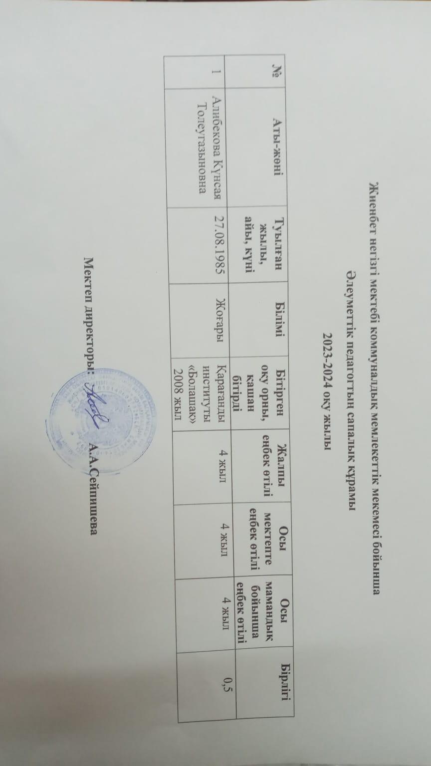 Әлеуметтік педагогтың сапалық құрамы » Жиенбет негізгі мектебі