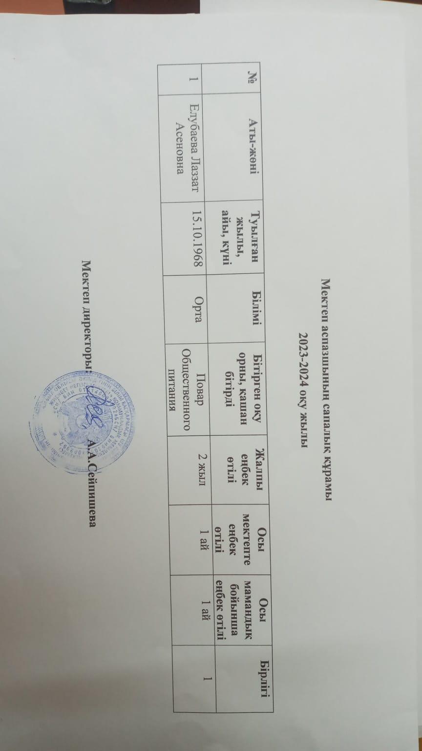 Мектеп аспазшының сапалық құрамы » Жиенбет негізгі мектебі