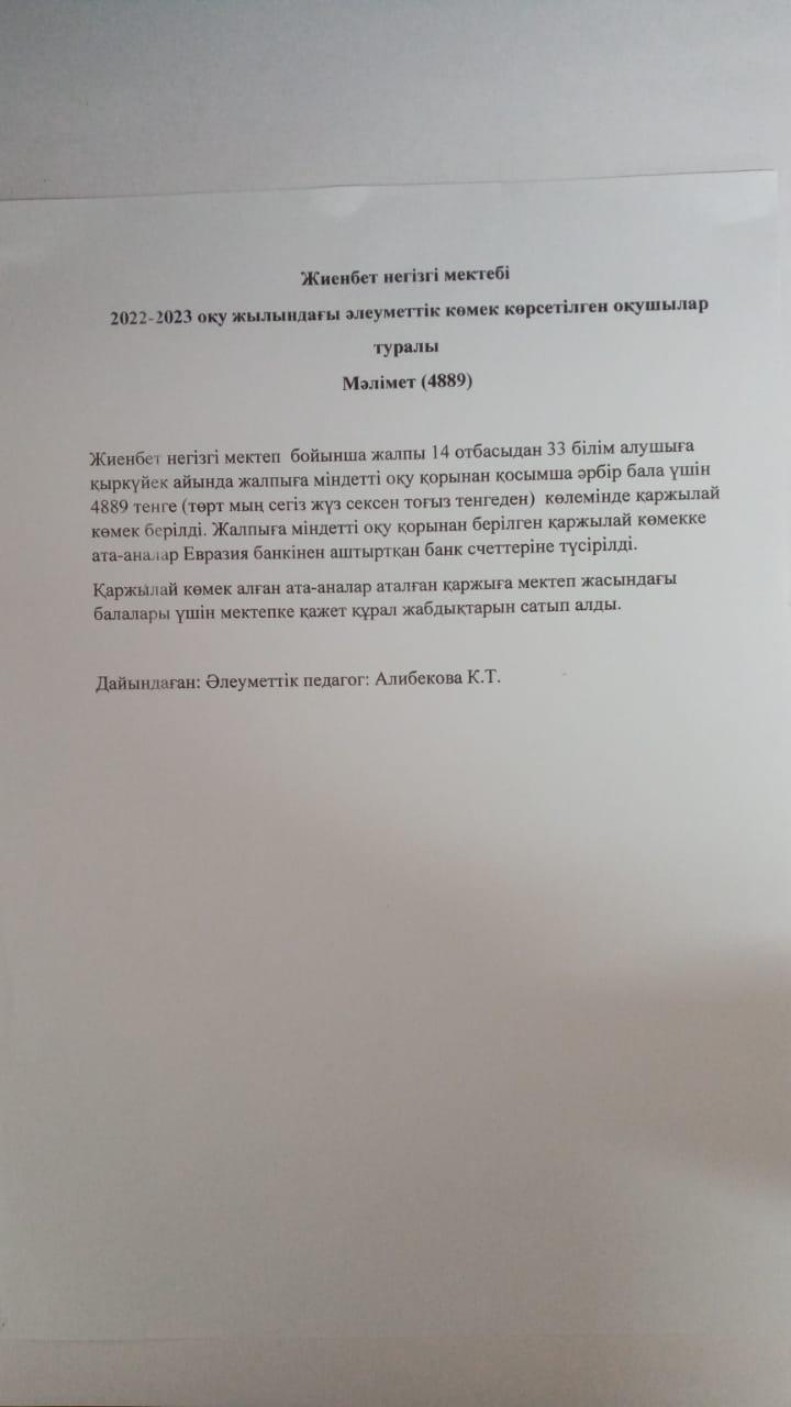 14 сентябрь 2022 0 1 2 3 4 5 2022-2023 оқу жылындағы әлеуметтік көмек көрсетілген оқушылар туралы мәлімет (4889)