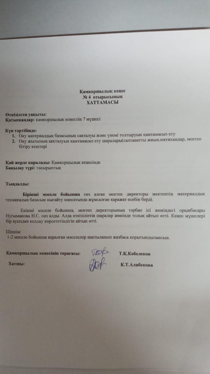 Қамқоршылық кеңес отырысының №4 хаттамасы » Жиенбет негізгі мектебі
