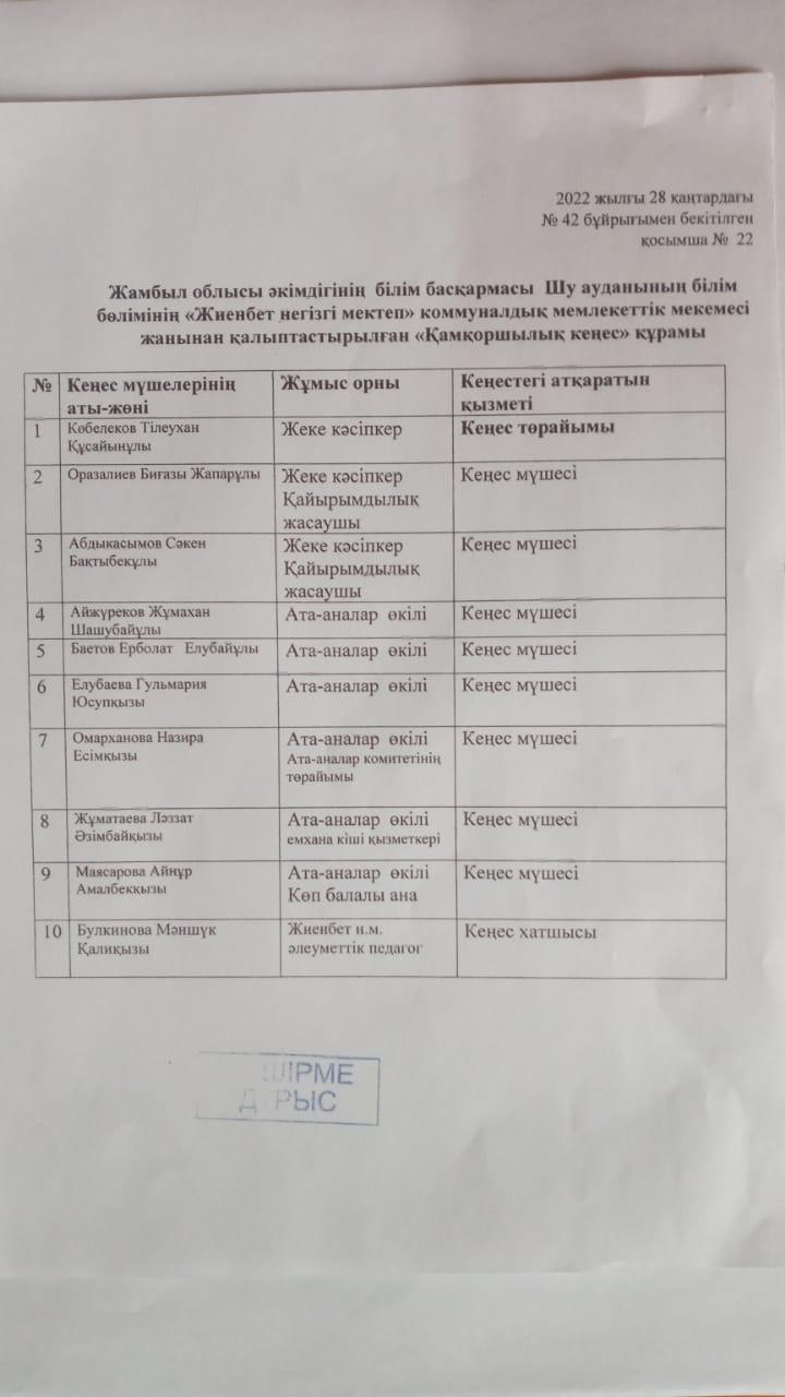"Қамқоршылық кеңес" құрамы » Жиенбет негізгі мектебі