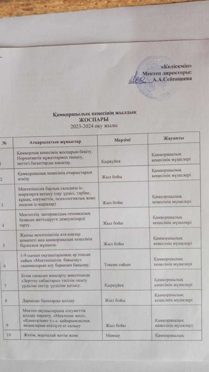 » » Қамқоршылық кеңесінің жылдық жоспары 2023-2024 оқу жылы
