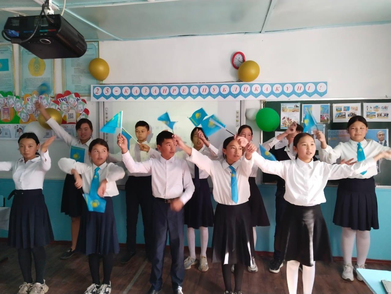 24 октябрь 2023 0 1 2 3 4 5 Республика күні Жиенбет Негізгі Мектебі Жиенбетмектебінде 25- қазан Республика күніне орай “Қазақстан туған елім-ұлы өлкем” тақырыбында сынып сағаттар өткізілді. #Біртұтас_тәрбие