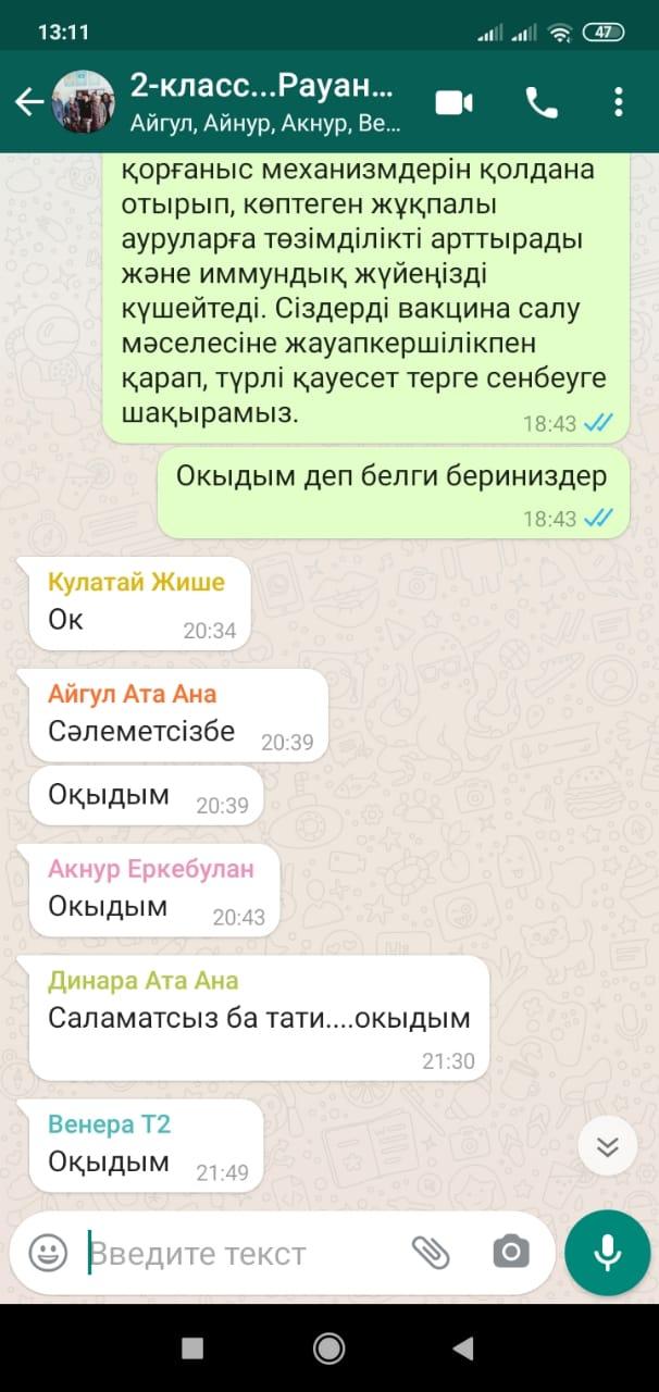 Вакцинация - бұл заманауи медицинада белгілі, жұқпалы ауруларға қарсы қорғанудың тиімді құралдарының бірі. Кез-келген вакцинация ағзаның қорғаныс қабілетін нығайтуға, оның тұрақтылығын қалыптастырып, түрлі қауіпті ауруларды қабылдамауына ықпал етеді. COVID-19 пандемиясы кезінде вакцина алу әр тұлға үшін өте маңызды әрекет. Вакцинациялау ағзаның табиғи қорғаныс механизмдерін қолдана отырып, көптеген жұқпалы ауруларға төзімділікті арттырады және иммундық жүйеңізді күшейтеді. Сіздерді вакцина салу мәселесіне жауапкершілікпен қарап, түрлі қауесеттерге сенбеуге шақырамыз.