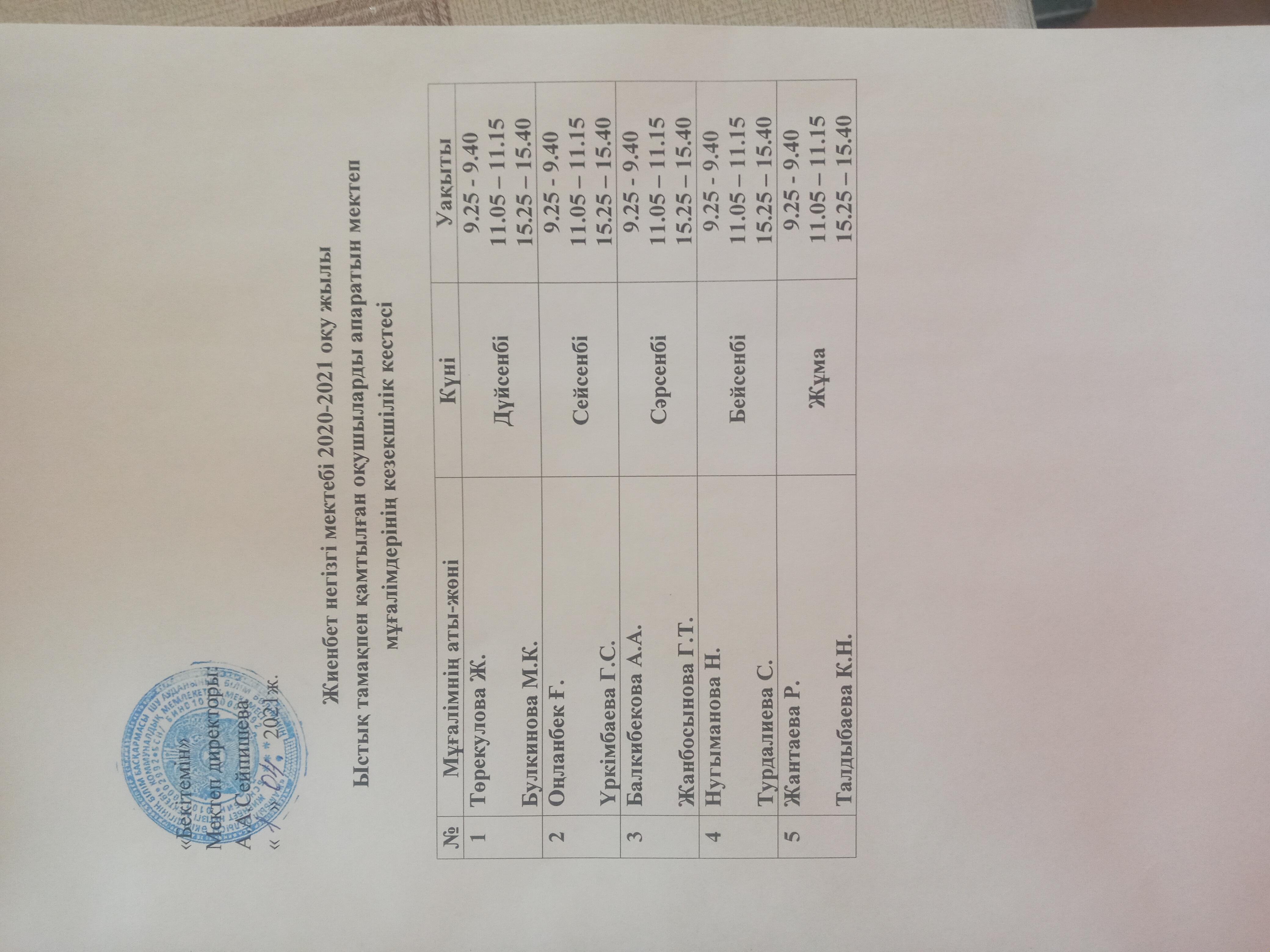 08 апрель 2021 0 1 2 3 4 5 Асханадағы мектеп мұғалімдерінің кезекшілік кестесі Жиенбет негізгі мектебі 2020-2021 оқу жылы.Ыстық тамақпен қамтылған оқушыларды апаратын мектеп мұғалімдерінің кезекшілік кестесі.