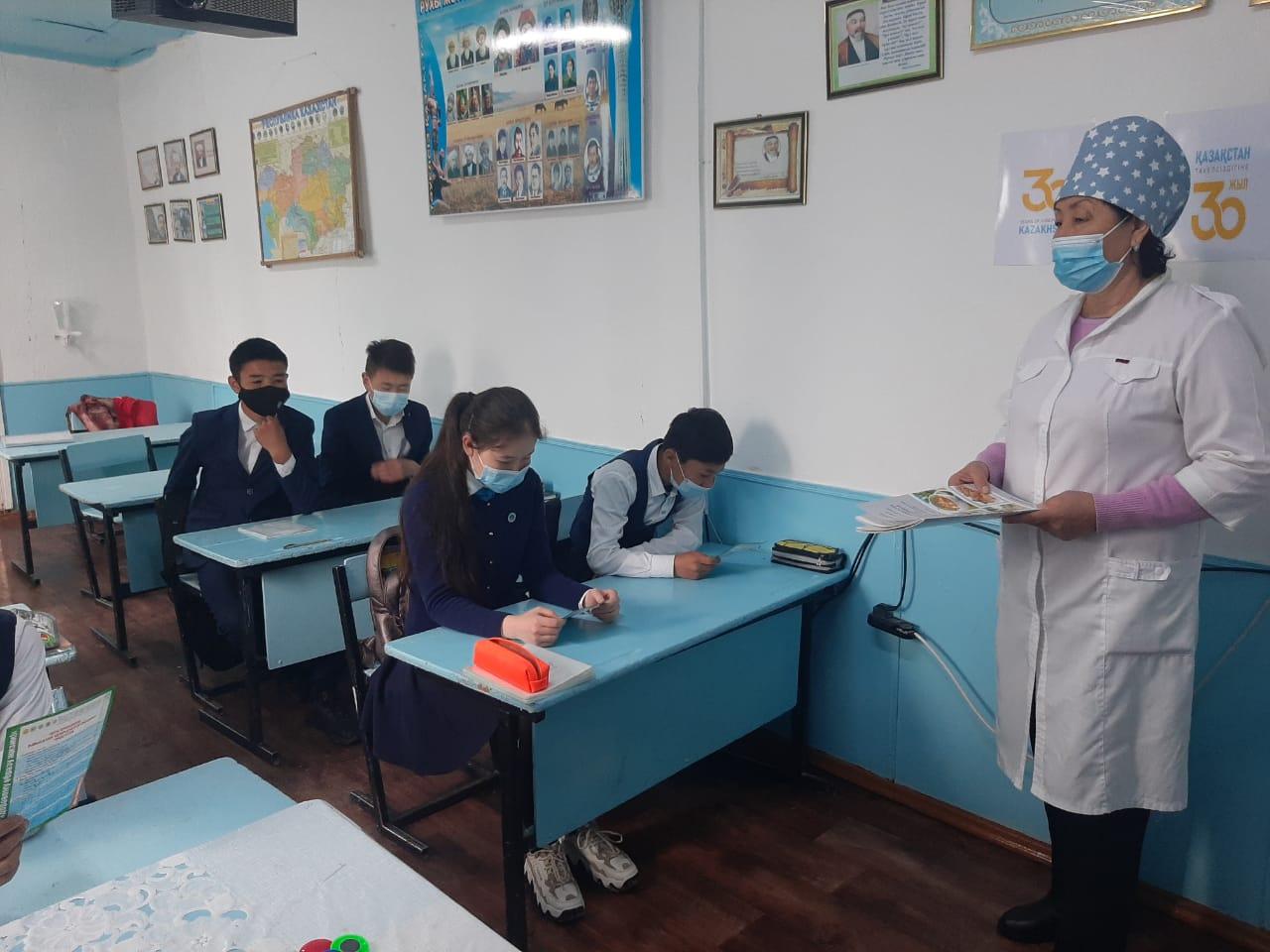 21 апрель 2021 0 1 2 3 4 5 "Дұрыс тамақтану" Жиенбет негізгі мектебінде Әлеуметтік педагог К.Т.Алибекова мен мектеп медбикесі Т.Калыкова 7-8 сынып оқушылары арасында "Дұрыс тамақтану" тақырыбында түсіндірме жұмыстары жүргізіліп, оқушыларға түсіндірме таратпа қағаздары таратылды.