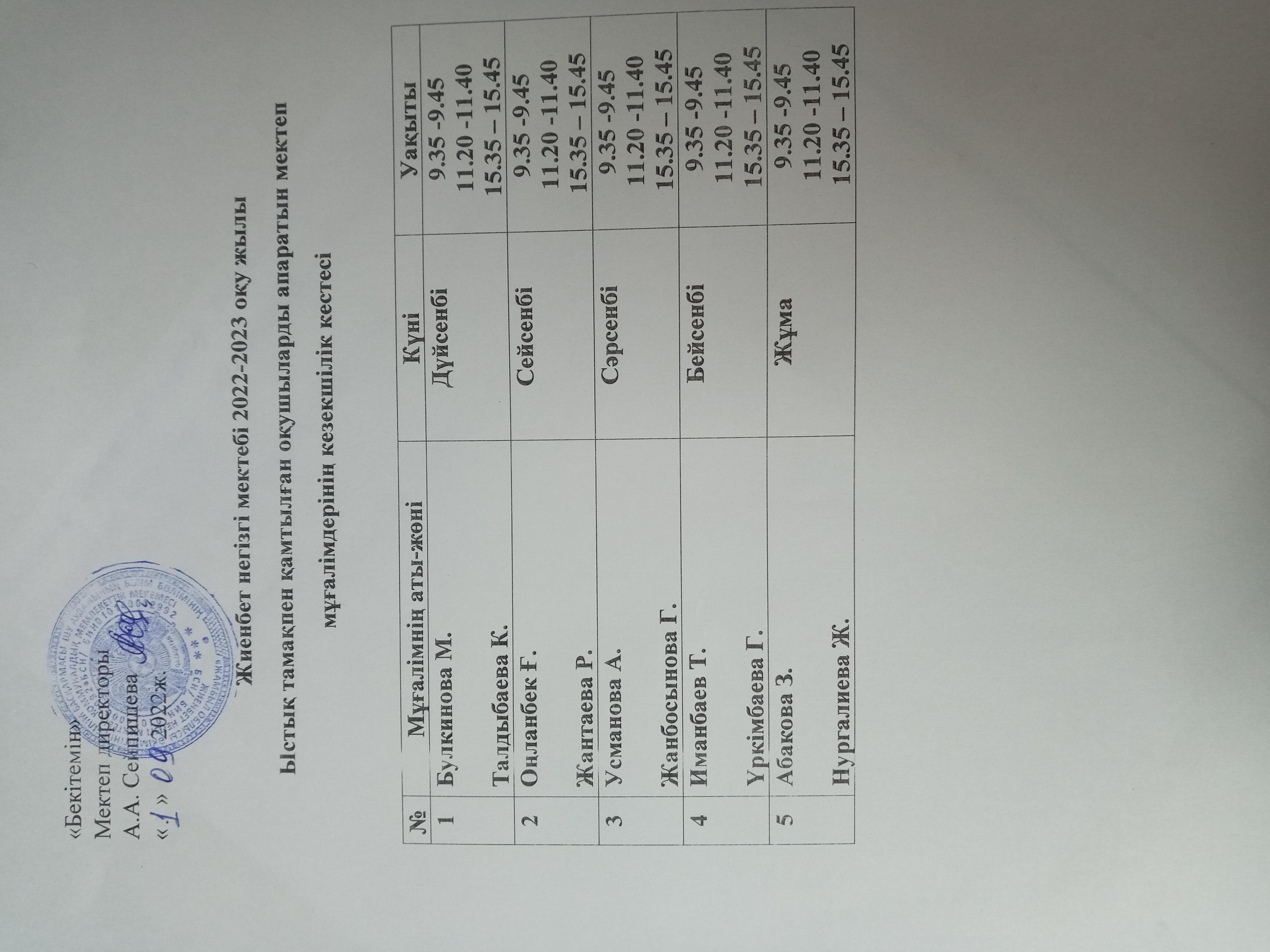 Мектеп асханасындағы мұғалімдердің кезекшілік кестесі » Жиенбет негізгі мектебі