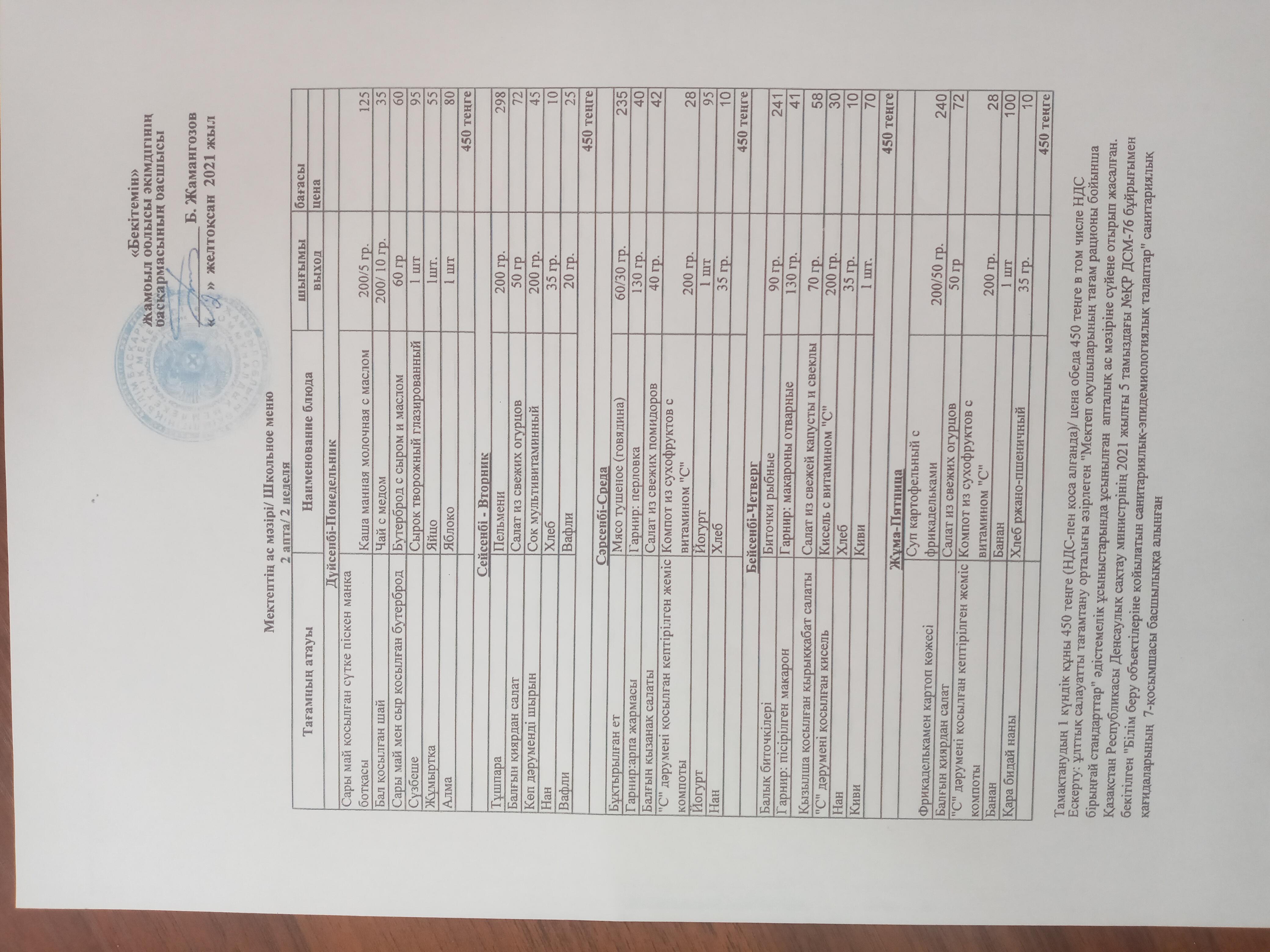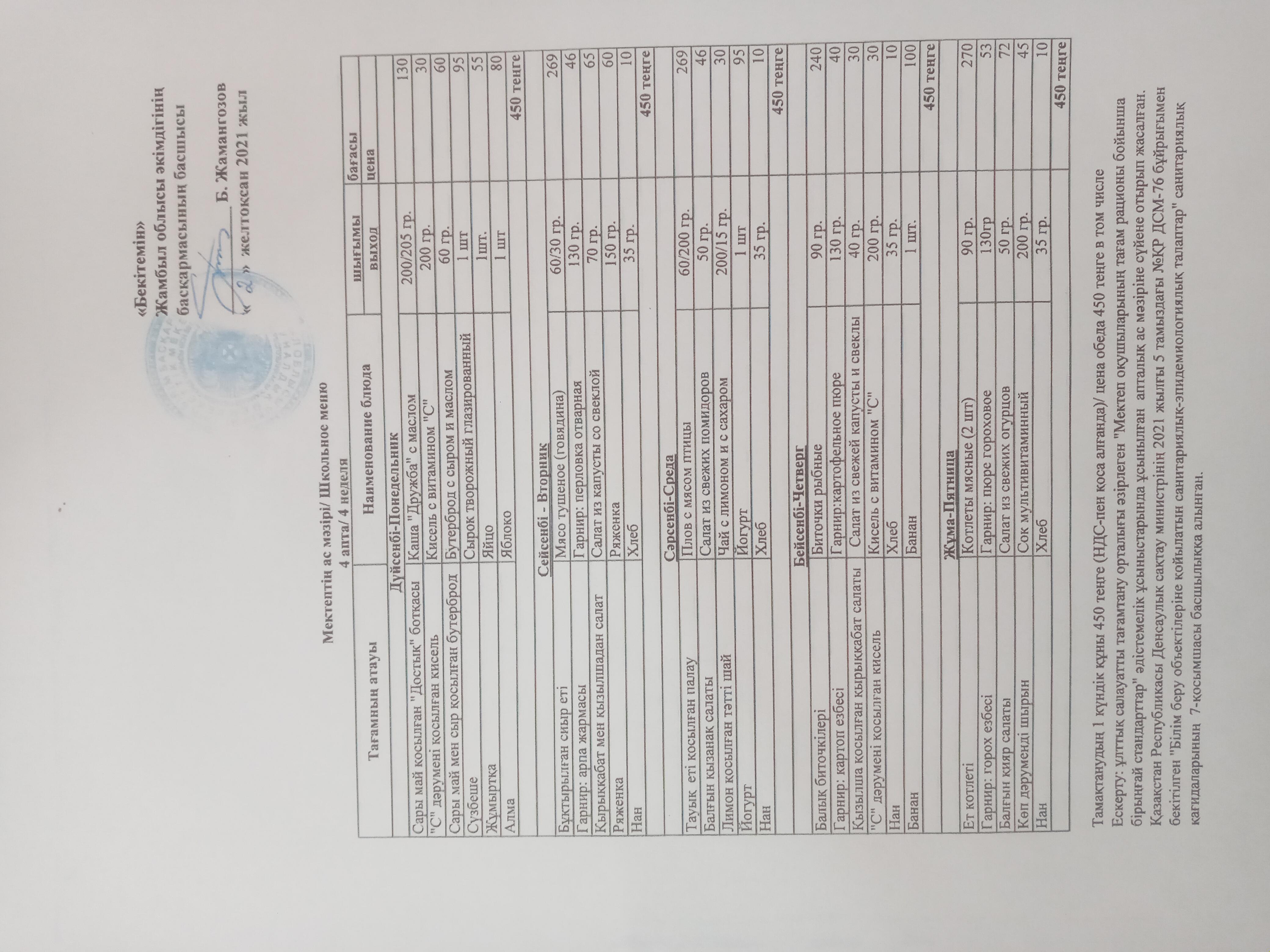 Мектептің ас мәзірі » Жиенбет негізгі мектебі