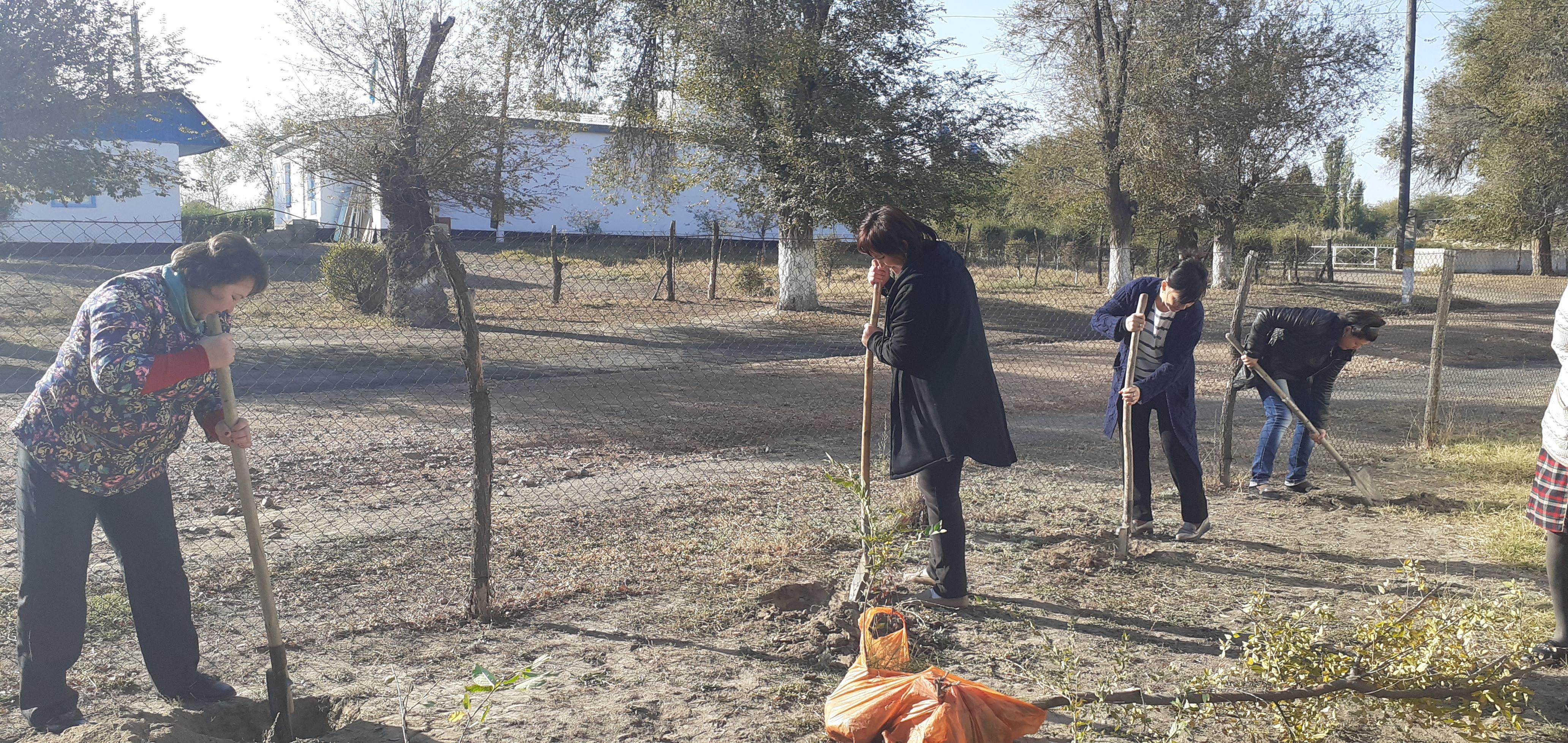 Жиенбет негізгі мектебінде мектеп маңайына ағаш отырғызу жұмыстары жүргізілді.