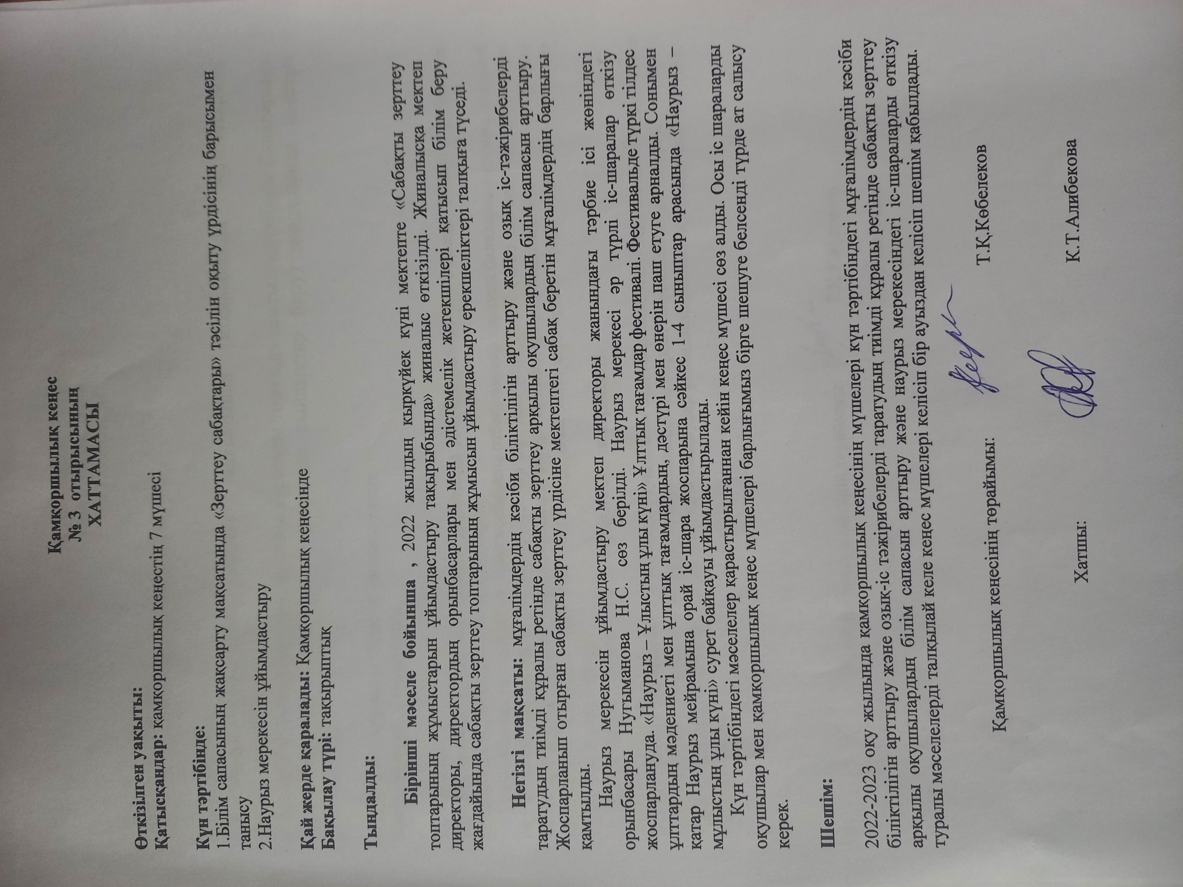 Попечительский совет отырысының №3 хаттамасы » Жиенбет негізгі мектебі