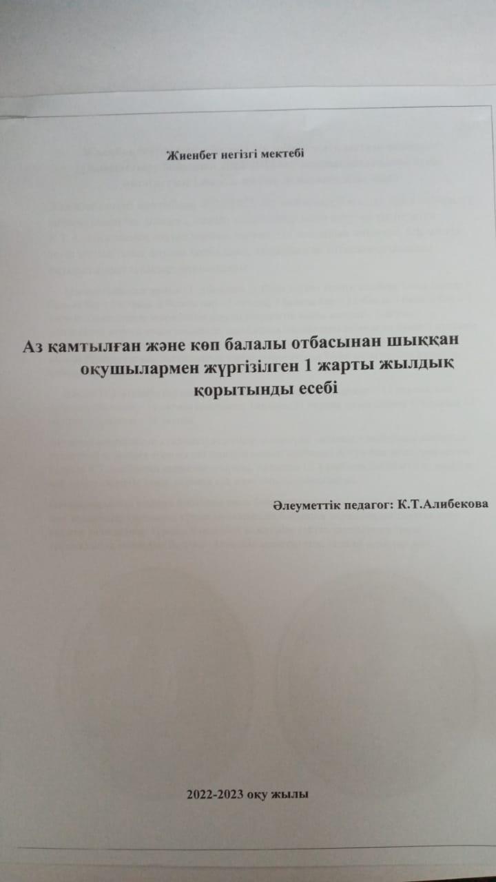Әлеуметтік педагогтың 1 жарты жылдық қорытынды есебі 2022-2023 оқу жылы » Жиенбет негізгі мектебі