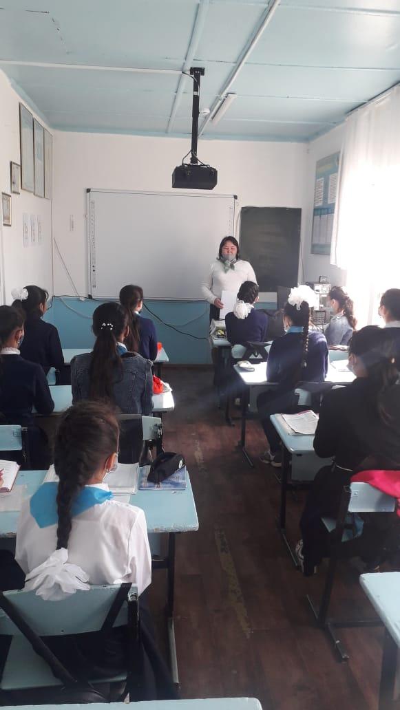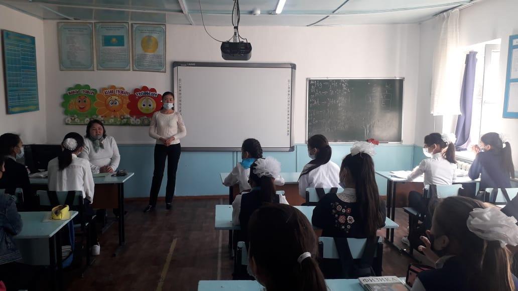 Жиенбет негізгі мектебінде мектеп директоры А.Сейпишева, ДТІЖО К.Талдыбаеваның қатысуымен, мектеп психологы Ж.Нұрғалиева "Ерте жүктіліктің алдын - алу" тақырыбында 7-8-9 сынып қыздарымен видеороликтер мен слайдтар көрсете отырып, қыз балаларға көптеген кеңестер берді. Қыз балаларға болашағына қатысты өзекті әңгімелер жүргізілді. "Қыз бала қылығымен" деп еліміздің ертеңі боп келетін қазақи қасиеттерді бойына сіңірген қазақ қыздарының инабаттылығын дарыту мақсатында өткізілді.