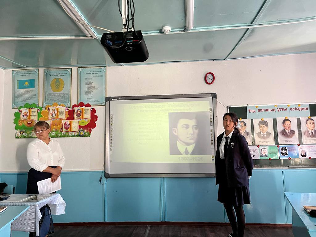 Жиенбет негізгі мектебінде Тілдер апталығының жоспарына сәйкес қазақ тілі мен әдебиеті пән мұғалімі Ғ.Ж.Оңланбек “Ұлы даланың ұлы есімдері “тақырыбында 9-сынып оқушыларымен ашық сынып сағатын өткізді.