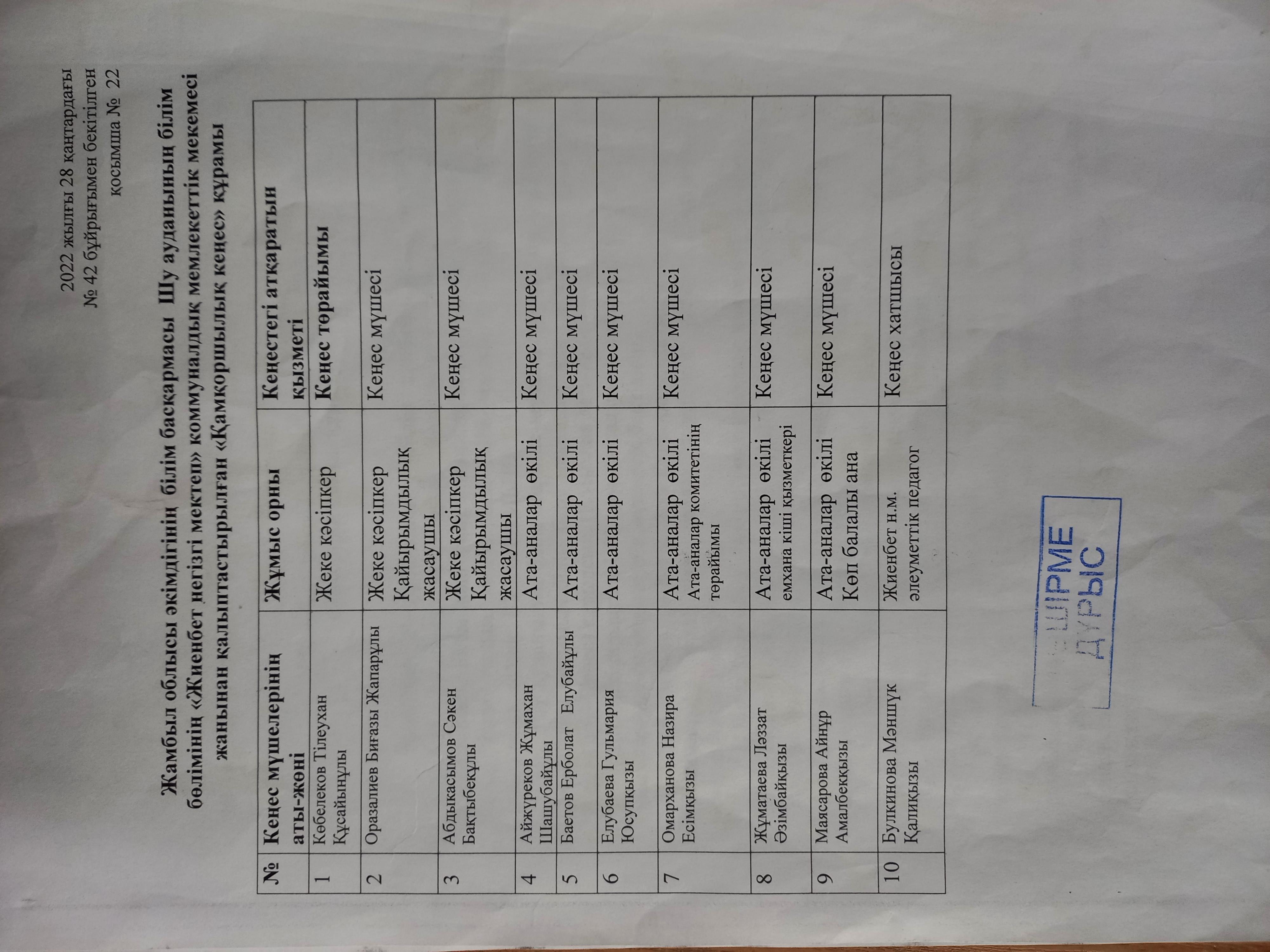 Попечительский совет құрамы » Жиенбет негізгі мектебі