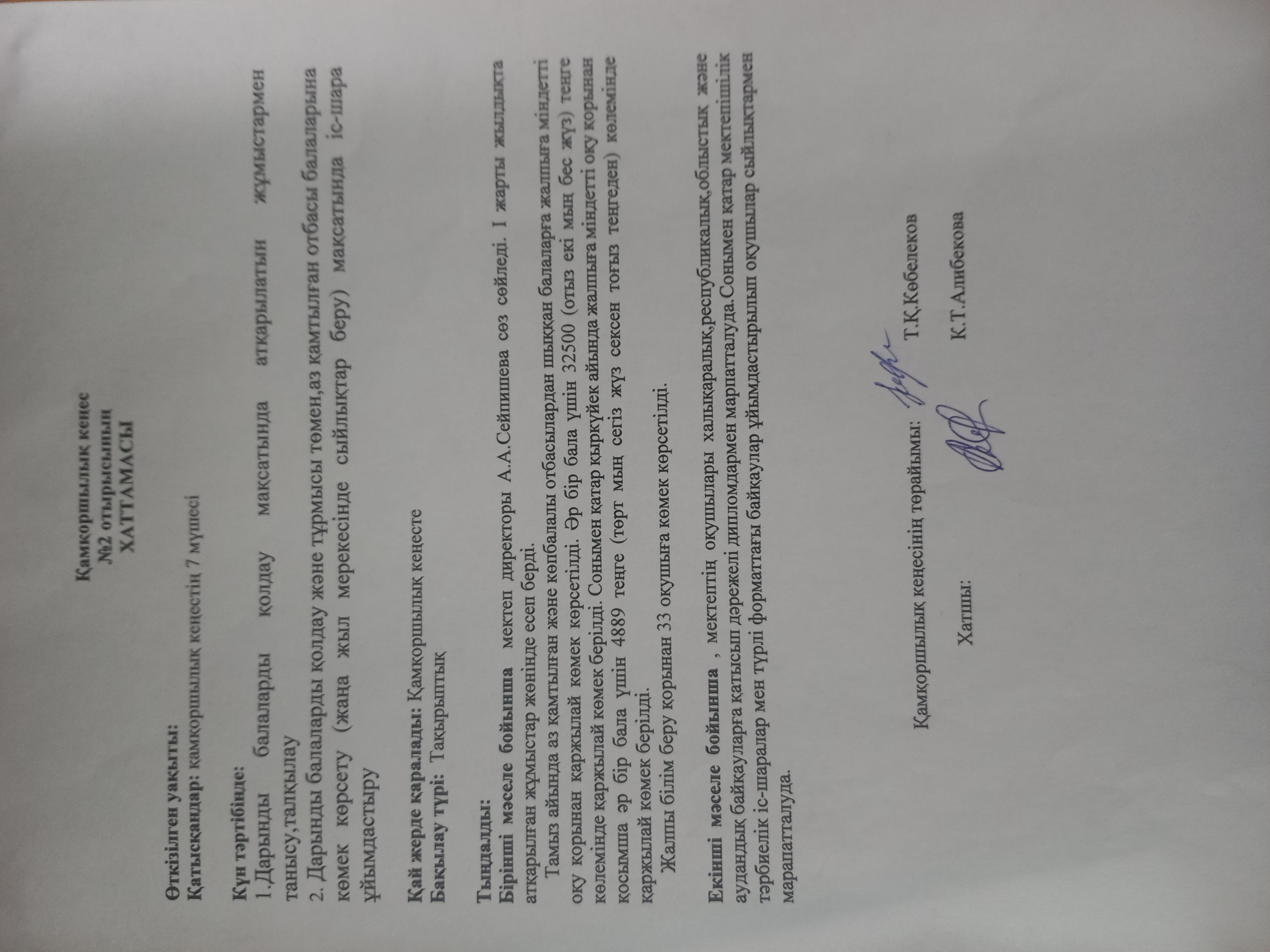 Попечительский совет отырысының №2 хаттамасы » Жиенбет негізгі мектебі