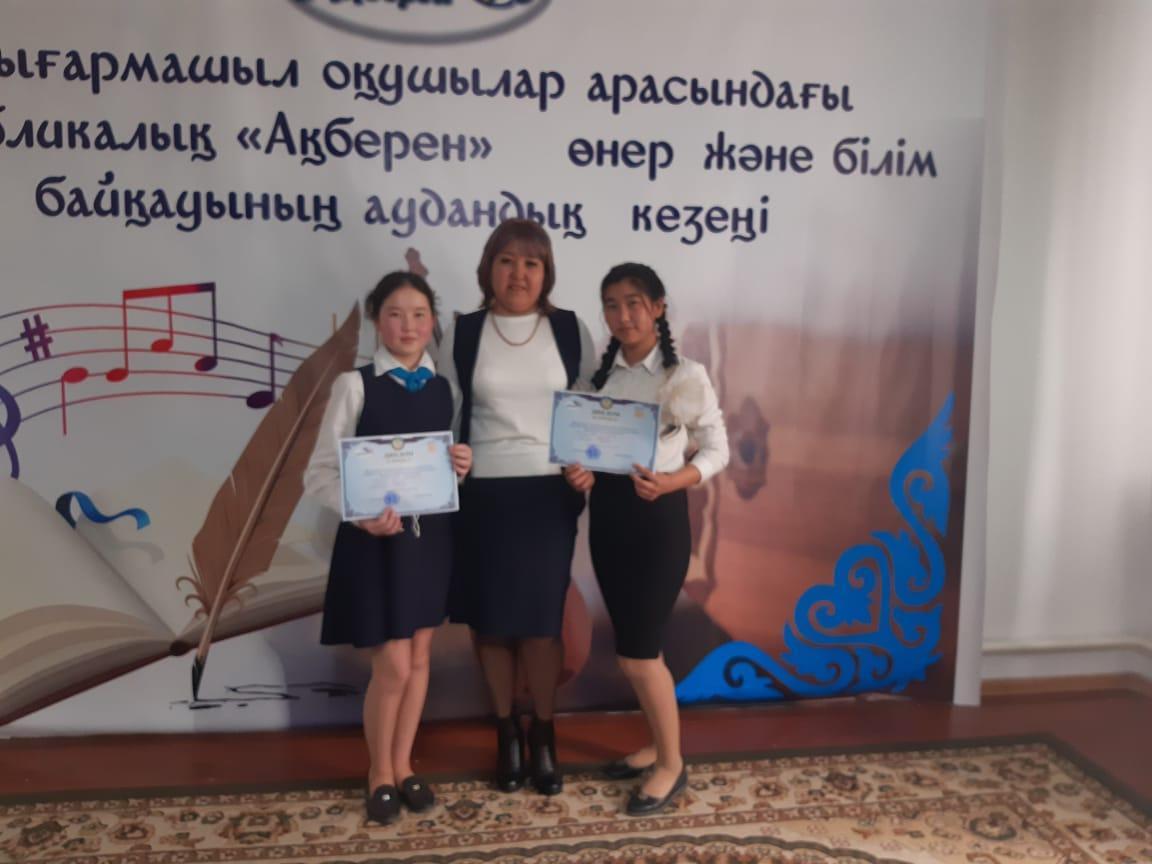 Жиенбет негізгі мектебінің шәкірттері аудандық "Ақберен" өнер мен білім байқауына қатысып, мәнерлеп оқу бойынша 9-сынып оқушысы Игиликова Азиза 3-орын, шешендік сөздер бойынша 8-сынып оқушысы Бақтыбек Айзере 2-орын және эссе жазу бойынша 9-сынып оқушысы Шойман Диляра 3-орынды иеленді. Жетекшілері білімді, білікті, шәкірттері талай жүлделі орындарды иеленген ұстаз Оңланбек Ғалия Жетпісбайқызы. Марапаттарың құтты болсын!
