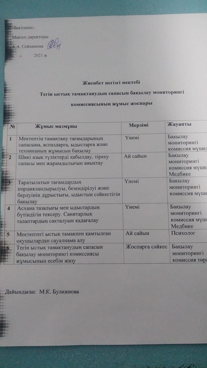 Мониторингі комиссиясының жұмыс жоспары » Жиенбет негізгі мектебі
