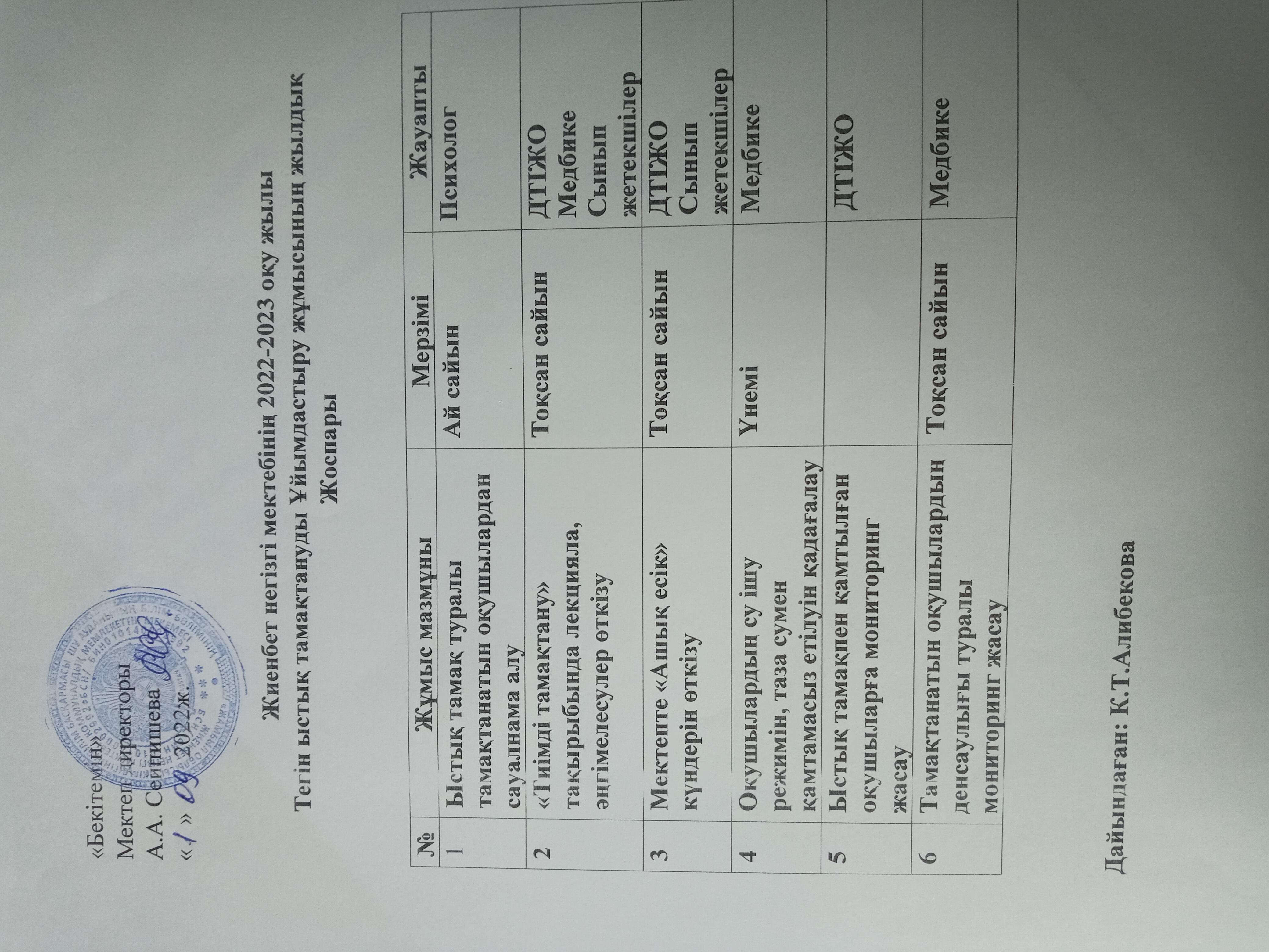 Тегін ыстық тамақтануды ұйымдастыру жұмысының жылдық жоспары » Жиенбет негізгі мектебі