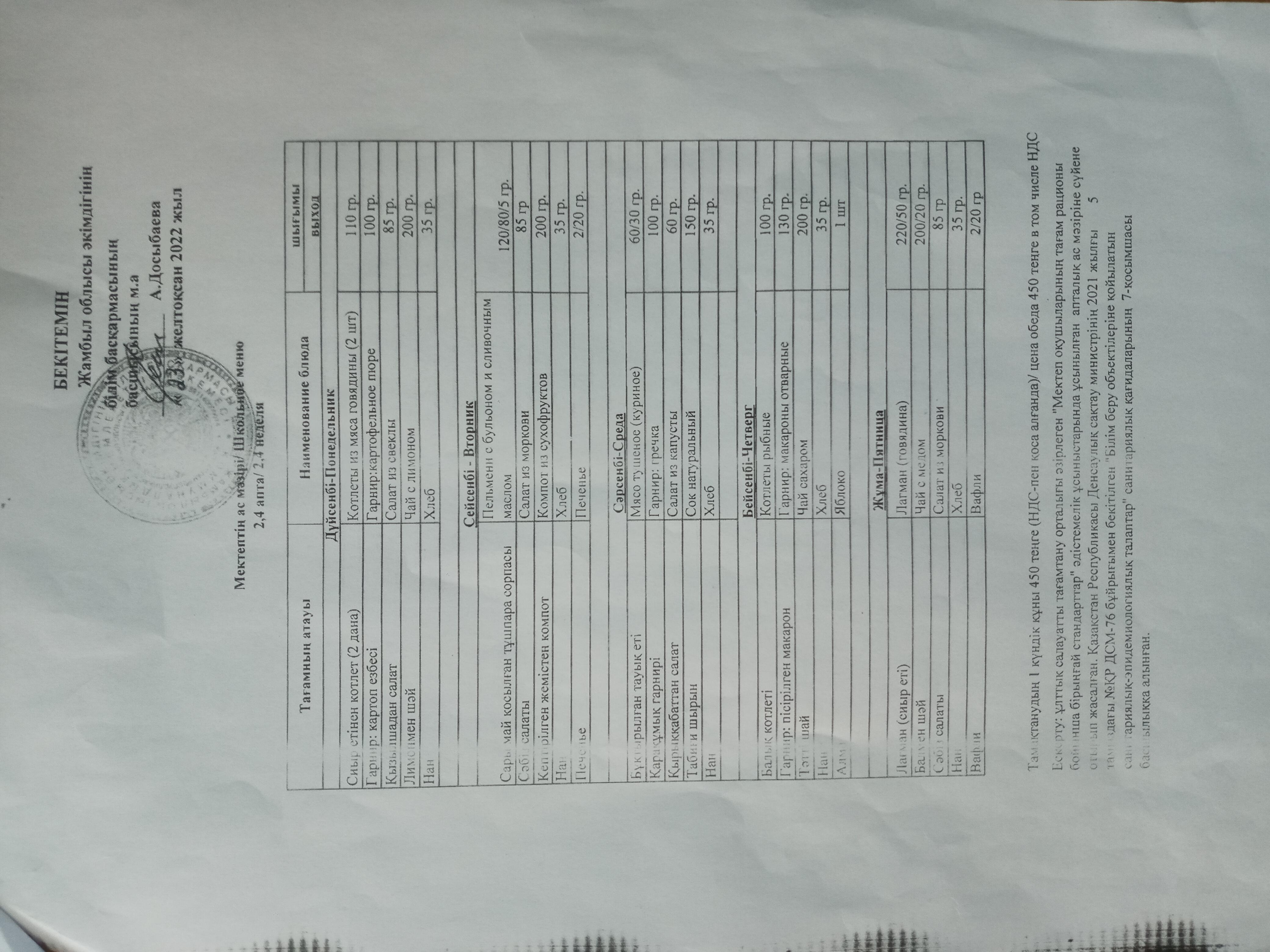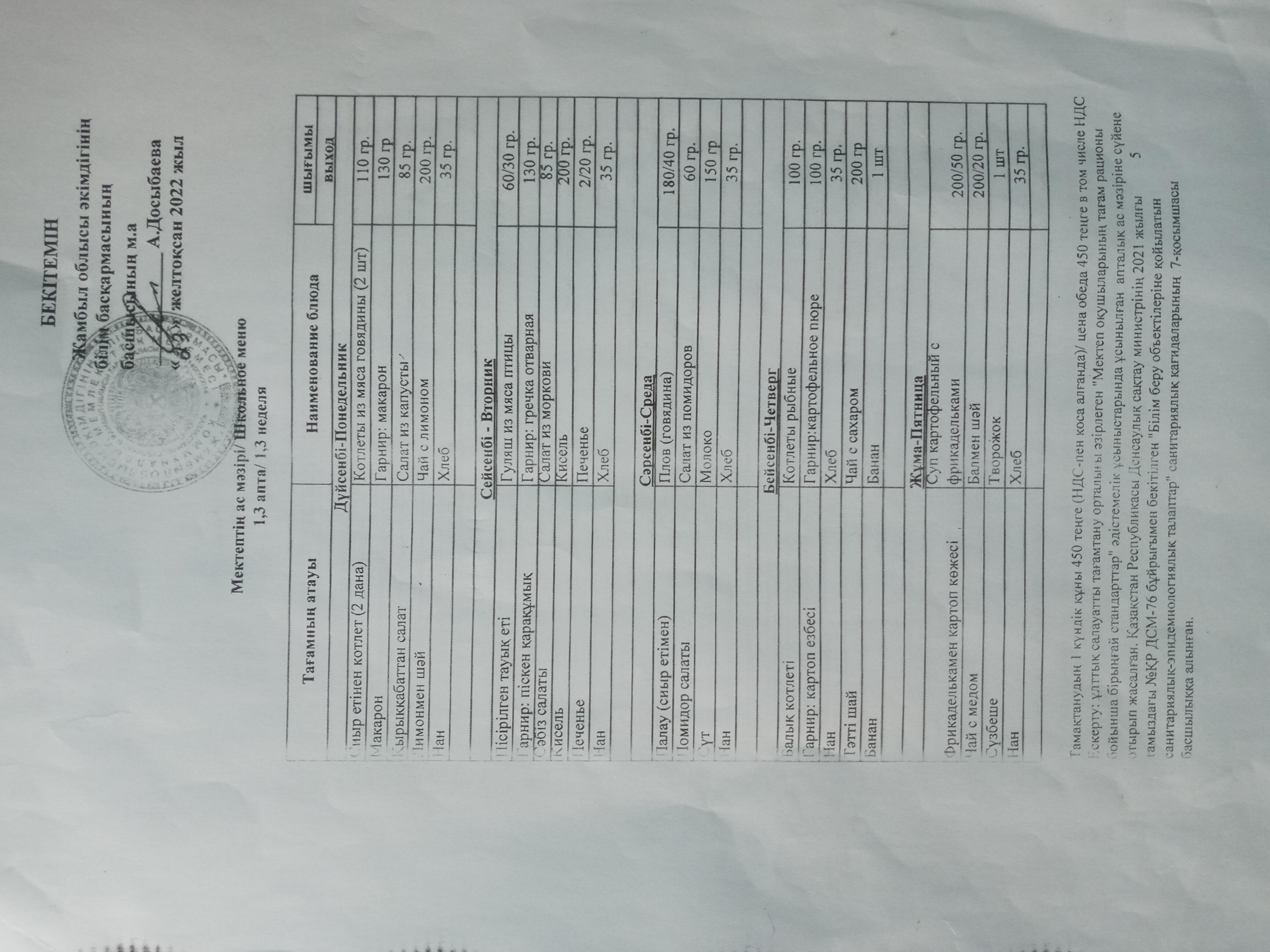 Мектептің ас мәзірі » Жиенбет негізгі мектебі