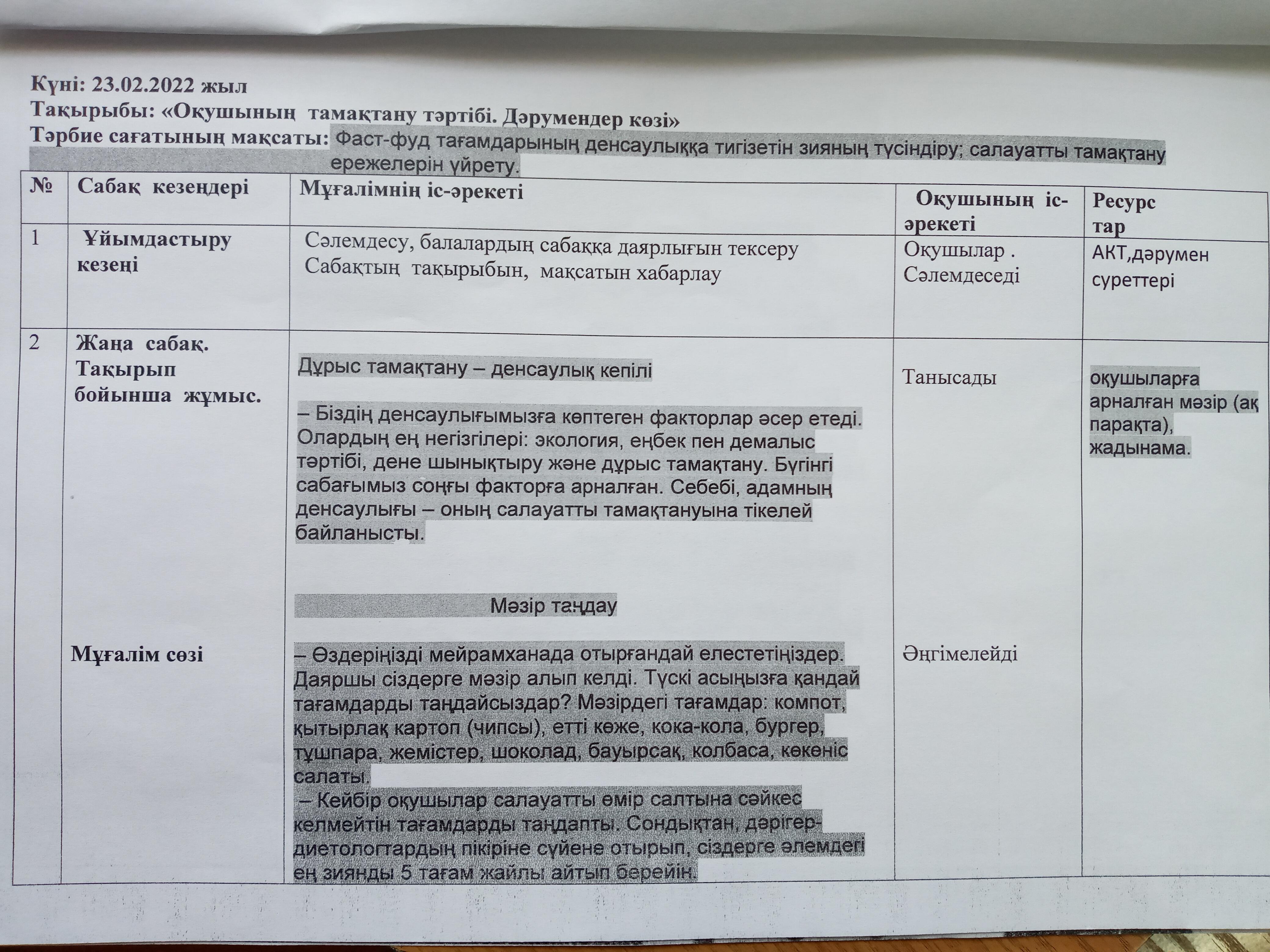 "Оқушының тамақтану тәртібі. Дәрумендер көзі"