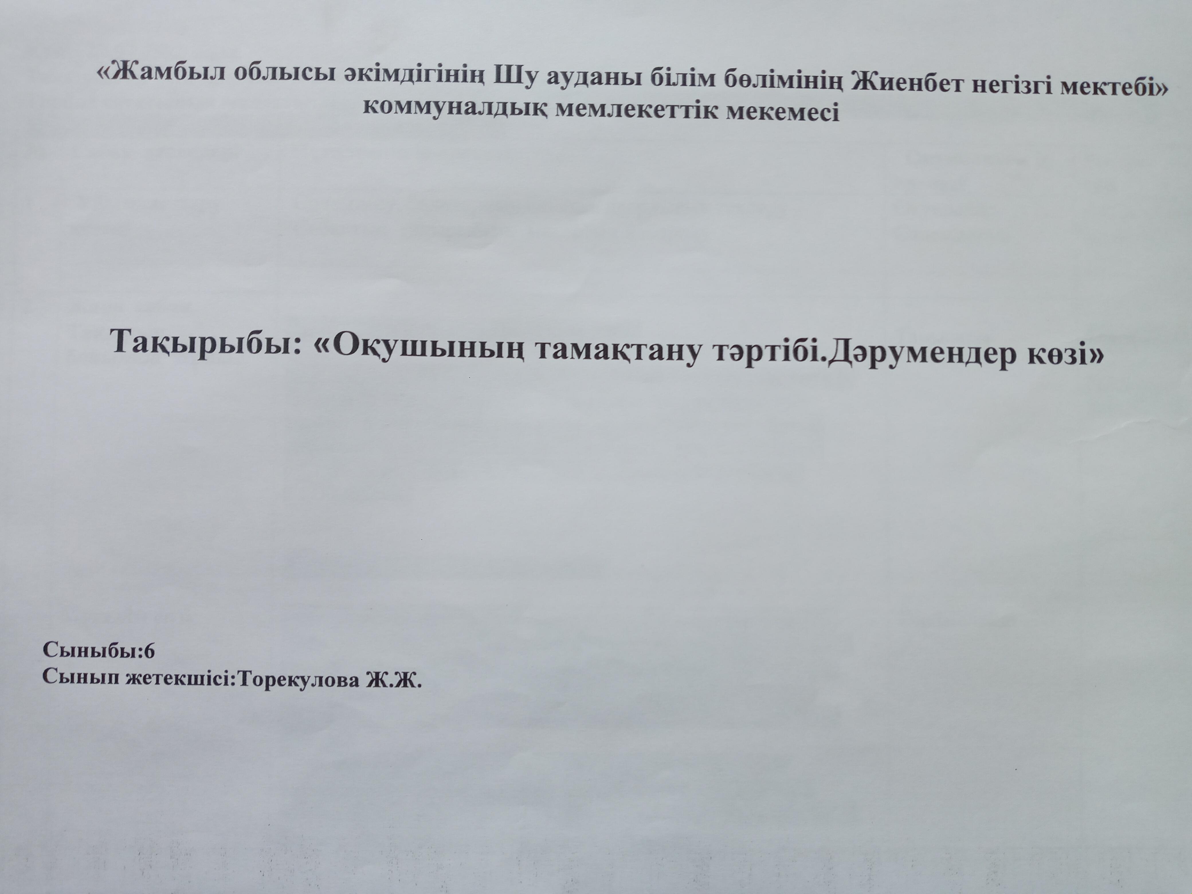 "Оқушының тамақтану тәртібі. Дәрумендер көзі" » Жиенбет негізгі мектебі